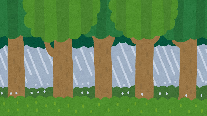 雨が降る森のイラスト 背景素材 かわいいフリー素材集 いらすとや